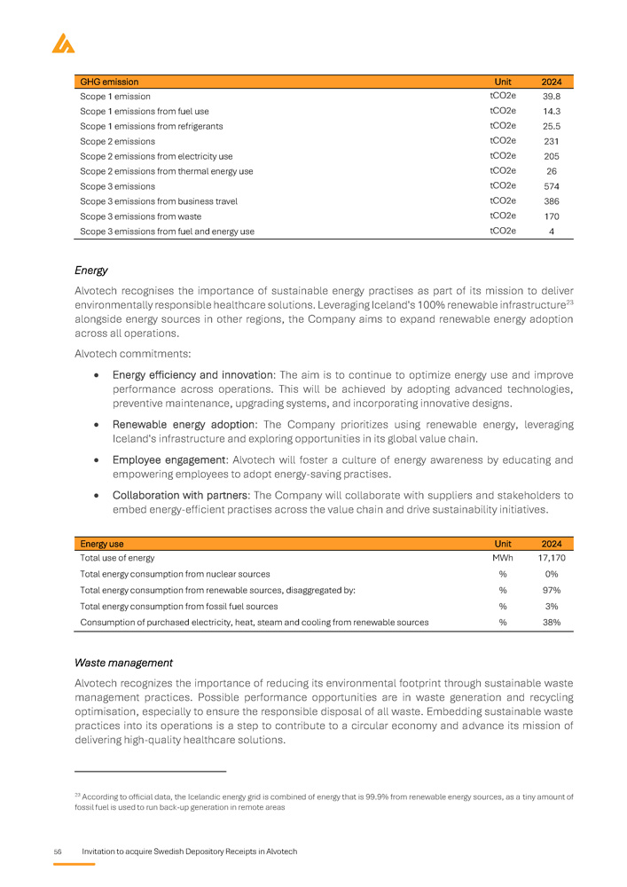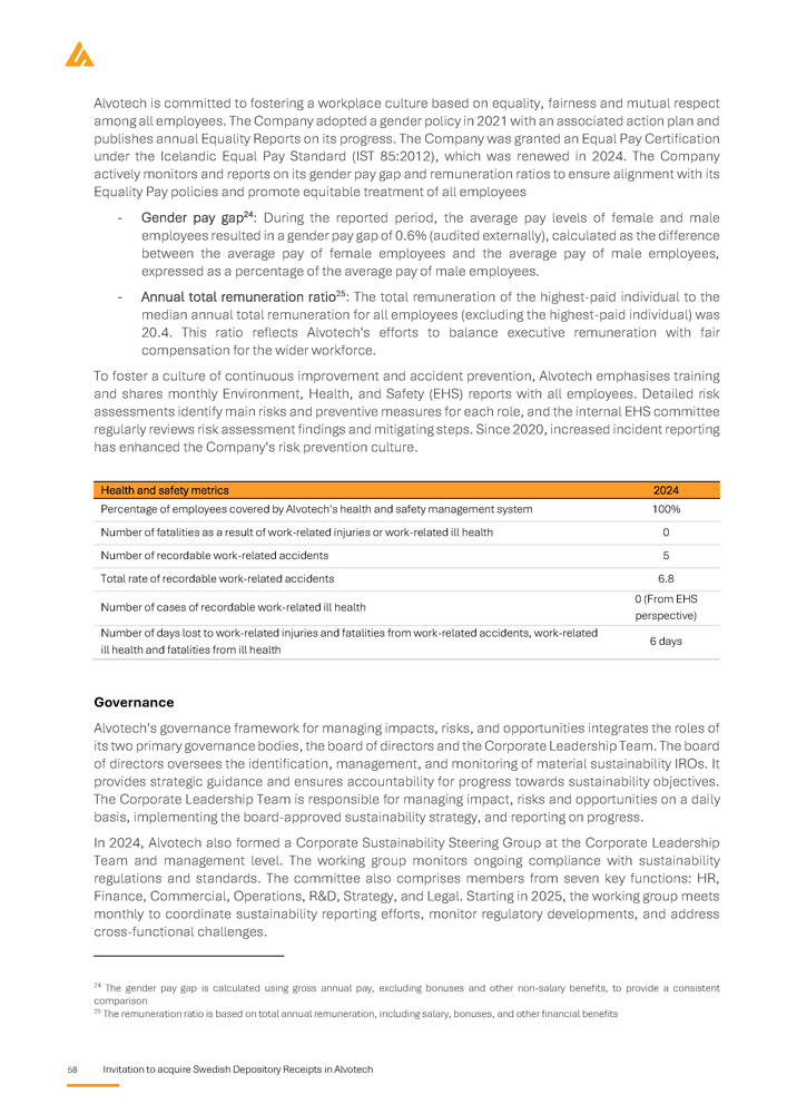 TABLE OF CONTENTS Summary...................................................................................................................... ... ..........................................3 Swedish summary ............................................................................................................................. ... .....................9 Glossary of terms ............................................................................................................................. ... ....................15 Risk Factors ............................................................................................................................. ... ............................17 Invitation to acquire SDRs in Alvotech ......................................................................................................................27 Background and reasons ............................................................................................................................. ... .........28 Terms and conditions ............................................................................................................................. ... ..............30 Market overview ............................................................................................................................. ... ......................37 Business Overview ............................................................................................................................. ... ..................45 Historical financial information.................................................................................................................. ... ...........62 Capitalization, indebtedness and other financial information ...................................................................................67 Board of directors and executive management.........................................................................................................72 Corporate governance ............................................................................................................................. ... .............76 The Underlying shares, Share capital and Ownership structure ................................................................................82 Legal considerations and other information .............................................................................................................92 Addresses ............................................................................................................................. ... ...............................96 Summary of the Offering the lower of either the volume - weighted average price of the Company’s share on Nasdaq Iceland Main Market during the application period of the Offering, or the last closing price of the Company’s share on Nasdaq Iceland Main Market during the application period of the Offering, with a discount of ten (10)% and converted to SEK based on the exchange rate published by the Swedish Central Bank (Sw. Riksbanken ) on the last day of the application period. The Offering Price will not exceed SEK 90 per SDR Price per SDR: 9 May 2025 – 16 May 2025 Application period: 19 May 2025 First day of trading: 21 May 2025 Settlement date: Financial calendar 25 June 2025 Annual General Meeting: 13 August 2025 Interim financial report January – June 2025: 2025: 12 November 2025 Interim financial report January – September Other information ALVO SDB Ticker SDR: SE0025011463 ISIN code SDR: